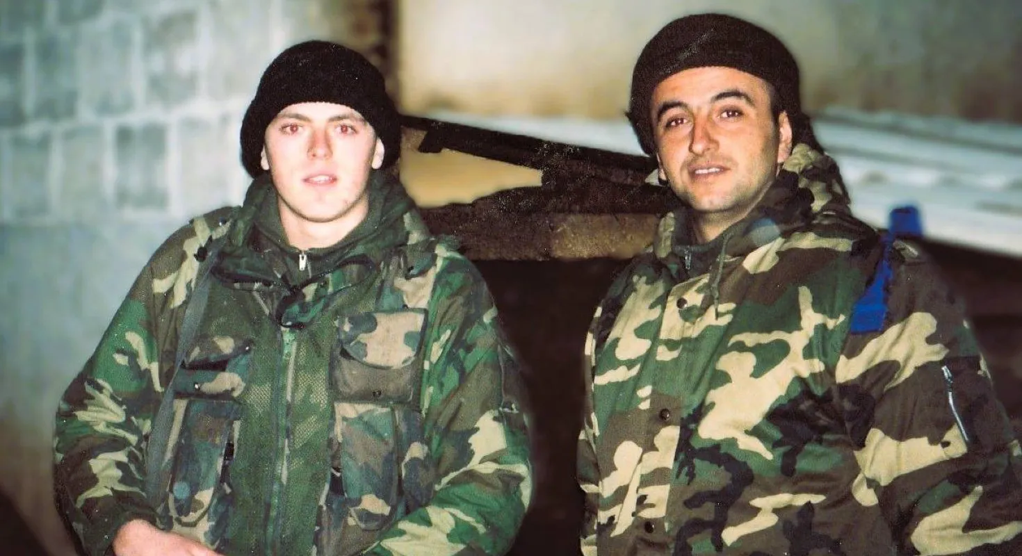 “Od branitelja Domovine do branitelja reprezentacije -Mandići su uvijek na prvoj crti! Fotografija sa suborcem, tatom Franjom Mandićem – pripadnikom 1. Hrvatskog gardijskog zdruga na Kupreškom bojištu.