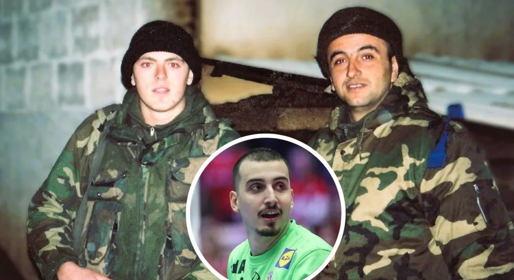 “Od branitelja Domovine do branitelja reprezentacije -Mandići su uvijek na prvoj crti! Fotografija sa suborcem, tatom Franjom Mandićem – pripadnikom 1. Hrvatskog gardijskog zdruga na Kupreškom bojištu.