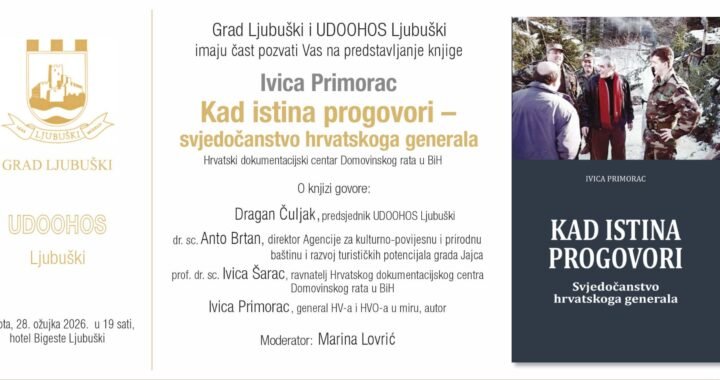 Grad Ljubuški i UDOOHOS Ljubuški organiziraju predstavljanje knjige “Kad istina progovori – svjedočanstvo hrvatskoga generala”